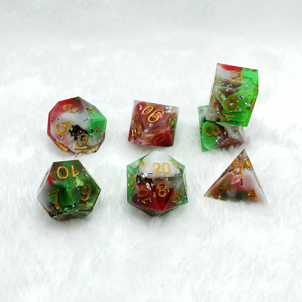 The processing is very complicated and all are made by hand, with carefully polishing to get the sharp edge and clear just like crystal, you can see the beautiful flakes with changing lights through. we hope you will like and enjoy it for D&D, Pathfinder, Shadowrun, Savage World, Math Games or anything else you can think of!