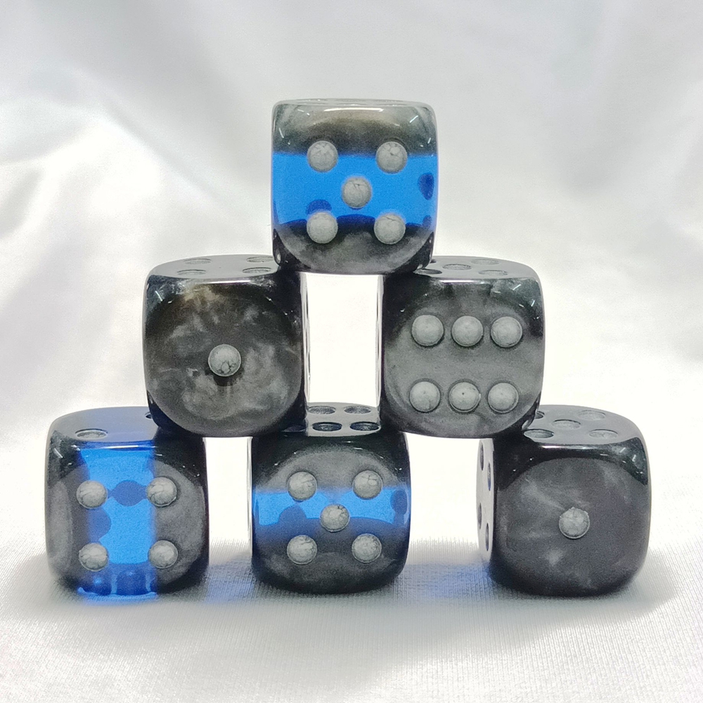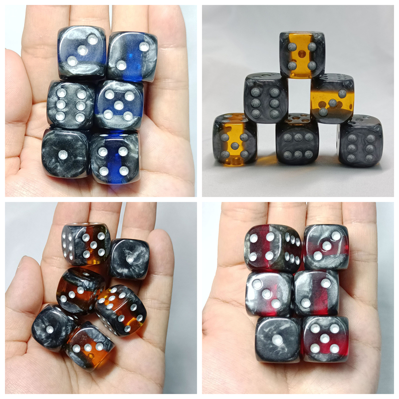 Pearlescent black dice with colored interlayer